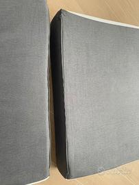 Larghezza 73 cm, lunghezza 195 cm, altezza 14 cm. I 3 pezzi sono staccabili e sfoderabili.