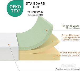 Zinus Materasso 80x190cm - Altezza 15cm MED H2-H3 - Materasso in memory foam al tè verde. Possibilità di acquisto di due materassi singoli con ulteriore sconto!!