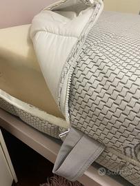 Vendo materasso singolo, traspirante prodotto con materiali di alta qualità. Struttura a 800 molle indipendenti/insacchettate che garantisce un sostegno preciso adattandosi in modo ideale ai movimenti durante il sonno combinata ad una fascia di memory foam di 3 cm che avvolge il corpo regalando un sonno di qualità. Il rivestimento, in fibra d'argento, è completamente sfoderabile, permettendo una facile rimozione e lavaggio. Completo di maniglie utili per lo spostamento. Le misure sono 90x200 cm e l'altezza del materasso è di 22 cm. E' stato usato solo un paio di mesi, causa trasferimento, quindi è come nuovo. Ritiro a carico dell'acquirente.
