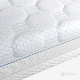 Materasso in schiuma alto 18 cm con 2 diversi livelli di rigidità e anima di 12 cm di schiuma di polietere e di 4 cm in memory foam che allevia la pressione e si adatta perfettamente al corpo. Fodera con polietilene rinfrescante da un lato. Trapuntatura spessa in memory foam visco con gel rinfrescante.