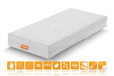 Materasso ortopedico, composto da 2 strati: il primo strato color bianco da 2 cm in Memory Foam schiuma viscoelastica a lenta memoria, termosensibile ed automodellante, avvolge il corpo "accarezzandolo" con effetto massaggiante per un vero RELAX. Il secondo strato color azzurro da 13 cm in WaterFoam, schiuma espansa ad acqua ad alta resilienza, è la struttura portante che sostiene il peso del corpo.