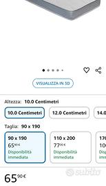 Materasso singolo ortopedico 90x190 cm H 10 cm, comprato a settembre 2025, come nuovo.