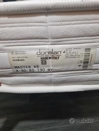 Il modello è il Dorelan Master, nella versione con molleggio R6. Caratteristiche del Modello Il Master è un classico della linea Dorelan, noto per essere un materasso ortopedico a molle biconiche (sistema Bonnell). Sostegno: È un materasso molto sostenuto e rigido, ideale per chi cerca un supporto tradizionale e molto stabile. Misure: Il codice 80-190 conferma che si tratta di un singolo standard (80x190 cm). Rivestimento: L'etichetta indica un tessuto e imbottitura in 100% poliestere, il che lo rende anallergico e molto resistente. il materasso è stato usato per 2 anni, e presenta piccole macchie come da foto su un lato