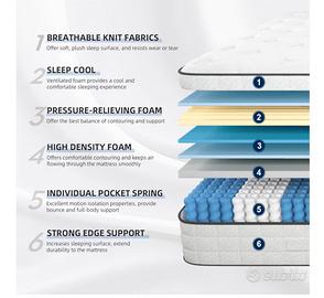 vendo materasso singolo ibrido a 7 zone media resistenza con schiuma traspirante e molle insacchettate misure: 90x200x22 usato solo per due mesi in ottime condizioni e lo vendo per cambio letto