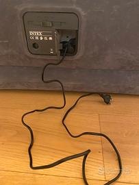 Materasso singolo con pompa integrata per gonfiarlo e sgonfiarlo, istruzioni e toppa per riparare eventuali futuri buchi. Usato tre volte.