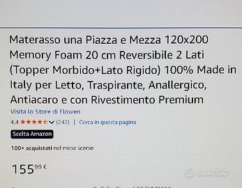 Vendo materasso come nuovo. Comprato x mio figlio di 8 anni e per lui è un po' troppo rigido. 100 euro.