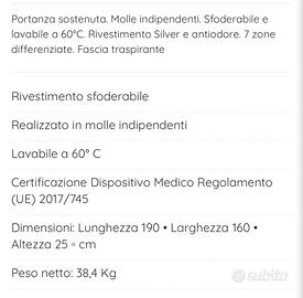 Vendo a bassissimo prezzo Materasso matrimonile Aliante, misure 160x190x25, comodissimo. Valore del nuovo, oltre 700€. Acquistato presso SME. Materasso a molle indipendente, completamente sfoderabile e lavabile in lavatrice, disposito medico. Strato estivo e invernale con memory foam e 7 zone differenziate. Il materasso è in ottimo stato perché posizionato in una seconda camera, usato quindi solo in alcune occasioni. Consegno naturalmente lavato e igienizzato. Solo ritiro a mano presso la mia abitazione in CENTRO STORICO di VENEZIA. Per ulteriori informazioni o foto, potete contattarmi. Grazie