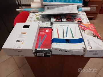 Vendo in stock o a singola necessità scatola archivio con bottone dorso 3cm,4cm,6cm,8 e 10 cm vari colori 30 pz circa Confezioni cartelline con lembi e senza lembi colorate 6 Confezioni 1 taglierina in A3 1 taglierina in A4 1 plastificatrice A3 Dorsetti x rilegare e spirale assortiti 10 scatola 1 dispenser x sapone da muro 1 Confezioni scatola archivio marrone da 25 pz. Pennarelli e penne assortiti....... Raccoglitore assortiti stretti e larghi di dorso a 2 e 4 anelli colori misti 30 pz.