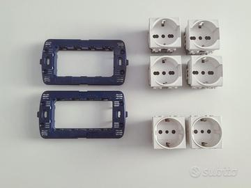 Materiale elettrico BTicino Living Light bianco 1x Placcha argentata 4 posti 4804 AR - cad € 8.00 2x cestelli 4 posti blu LN4704 - cad € 3.00 1 presa bipasso N4140/16 Schuco 2posti - cad € 8.00 2x presa monopasso SchucoLuna (non BTicino) C4140 2posti - cad € 4.00 1x pulsante N4005 1 posto- cad € 5.00 1x pulsante N4005 3 posti- cad € 5.00 1x interruttore 4001N 1 posto- cad € 5.00 1x presa TV femmina derivazione derivata 2 posti N4201 D/2 2 moduli - cad € 9.00 1x presa telefonica 1posto (non BTicino)- cad € 3.00