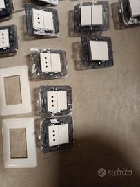 8 placche bianche da 3 posti + 7 mascherine 15 placche bianche + mascherine da 2 posti 3 shuko 2 prese antenna 10 prese 10a 3 prese 16a 6 pulsanti (per relè) 1 interruttore bipolare 6 interruttori (o deviatori) 19 coprifori