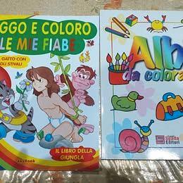 Vendo materiale scolastico e all'occorrenza molte cose possono essere anche usate come da ufficio. Il tutto comprende: 1 borsa mai usata, media a tracolla di colore blu,con varie tasche di diverse dimensioni al suo interno. Marca BRUGI e di misure 30 x 37. 3 forbicine di diversa grandezza a punte arrotondate. 2 album da colorare. 1 forbice grande professionale che taglia a zig zag. 41 graffette colorate per fogli. 6 portamine + mine B12. 100 fermacampioni varie misure. calcolatrice. mini spillatrice portatile con relative spillette. buca fogli professionale grande. buca fogli bambino a forma di stellina. temperamatite a manovella. 26 mini matite di legno. 60 Buste trasparenti nuove per raccoglitori ad anelli.
