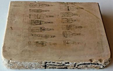 Matrice pietra litografica etichetta cioccolato Alemagna PIETRA LITOGRAFICA X STAMPARE L'ETICHETTA DEL CIOCCOLATO ALEMAGNA DIETRO SI INTRAVEDONO DISEGNATE AL ROVESCIO BOTTIGLIE DI LIQUORI DI UN USO precedente DELLA PIETRA EPOCA INIZIO, META'SECOLO SCORSO DIMENSIONI: cm. 24,5x18,5 spessore cm. 3,5 peso Kg. 4,050 14:19