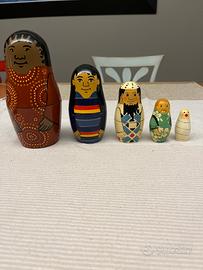 Bambole di nidificazione Ikea vintage, bambole di nidificazione Matrioska Ikea "Jutanas" disegnate da Maria Vinka.Made in Russia. Altezza della matriosca più grande cm.16