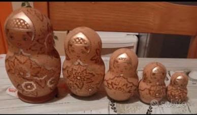 Vendo bellissima matrioska introvabile ,in legno decorata a mano,anni '50/'60,per collezionisti .Tenuta benissimo,come da foto.5 pezzi,altezza 13 cm.ottima idea regalo.Prezso trattabile.