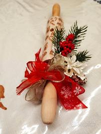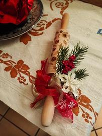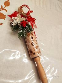 Matterello in legno da cucina con incisioni per modellare biscotti fatti in casa.
