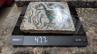 Bellissima mattonella maiolica del rinascimento rappresenta un superbo cavallo con un gagliardetto Misura 20x20 Spessore 2.5 Pesa 475 grammi