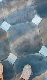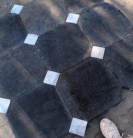 antico pavimento in mattonelle ottagonali in ardesia con tozzetto in marmo di Carrara