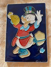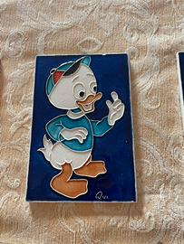 N.5 Mattonelle decorative vintage in ceramica W.Disney anni 60 Qui Quo Qua zio Paperone zio Paperino la invio in omaggio é lesionata.