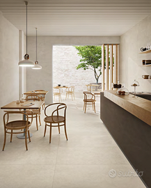 51.12 metri quadri di mattonelle marca Fondovalle, linea Stone icons, colore Milk in gres porcellanato; dimensioni 120x60 cm, rettificate, spessore 6.5 mm.