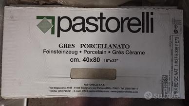 Vendo 12 scatole di gres porcellanato beige, marca PASTORELLI (made in Italy), qualità alta, prima scelta. Effetto pietra naturale, formato 80x40 cm. Materiale nuovo, ancora imballato. Quantità: 11,52 mq totali (36 mattonelle) Il prezzo si intende a scatola. Ritiro zona Giulio Agricola.