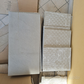 Gres porcellanato Keope 30x60 grigio per un totale di mq. 5,40 (in aggiunta altre mattonelle sane ma tagliate). Una scatola è nuova mentre le altre sono state tolte e ripulite dalla colla (ved. foto). Ritiro in zona.