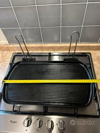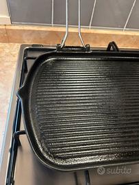 Grande bistecchiera professionale in ghisa, ottima per grigliare carne, pesce e verdure. Misure cm 50×27 con manici in acciaio reclinabili e staccabili vedi foto allegate!!!!