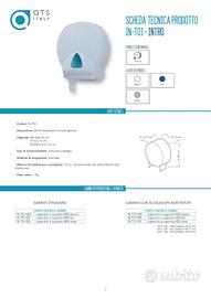 MAXI DISTRIBUTORE DI CARTA IGIENICA IN-TO1 BIANCO DIAM. ESTERNO MAX 30 CM - P. MAX 10 CM - DIAM. ANIMA MIN 4,2 CM FUNZIONAMENTO MANUALE A STRAPPO