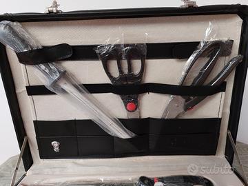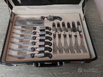 Mayer Classics Solingen, 24 pezzi (8 coltelli x vari usi, 1 forchettone, 2 forbici, 1 affila coltelli, 6 forchette, 6 coltelli) tutto in una valigetta, NUOVI mai usati