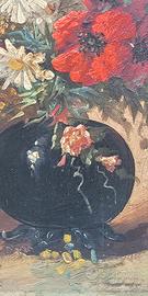 Dipinto di buona qualità, con particolare attenzione a tutti i dettagli dei fiori e del vaso, alle luci e alle ombre del dipinto. Corrispondente alle cornici originali.