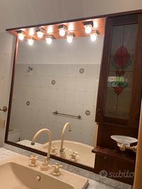 Mobile da bagno in massello di noce, composto da specchio con pensile, base con mobile e ripiano in marmo bianco e lavabo beige. Ottime condizioni, vendo causa ristrutturazione.