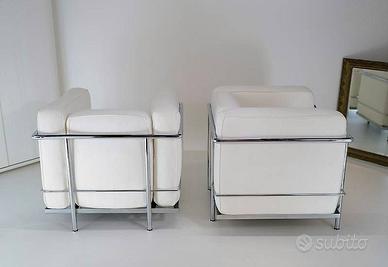 MDF ITALIA set di 2 Poltrone LC2 in morbida pelle Martellata di concia toscana bianca. Modello disegnato nel 1928 da i tre famosi e brillanti architetti parigini: Le Corbusier e Pierre Jeanneret, Charlotte Perriand. Quando lavoravano tutti nello studio del maestro svizzero. Padri di molti altri manufatti di arredo, come la LC4, LC3, LC5, LC6....... intramontabili icone di design del 900. Vengono vendute a 3400 euro. OTTIMO STATO per entrambe, tenute in maniera esemplare. Richiedere appuntamento per la visione . Spedizione disponibile su Lazio a 400 euro).