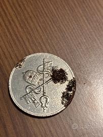 Vendo medaglia commemorativa raffigurante Papa Giovanni XXIII (Ioannes XXIII Pontifex Maximus), coniata nel 1961. Sul retro sono presenti le chiavi di San Pietro e la tiara papale, simboli dello Stato Vaticano. Oggetto storico ideale per collezionisti di articoli religiosi o numismatica vaticana.