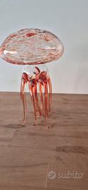 Medusa con sfumature del rosso, vetro borosilicato, opera dell'architetto Massimo Lunardon, ha due fori superiori per eventuali fiori. Altezza cm 21, diametro cm 11.