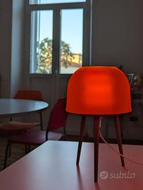 La base a treppiede è realizzata in PLA rinforzato con fibre di legno di noce, che le conferisce un aspetto naturale, caldo ed elegante.