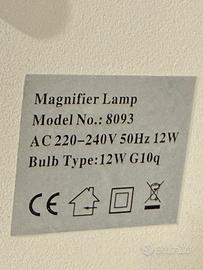 LAMPADA DA LAVORO 15 LED CON LENTE 3 + 12 DIOTTRIE DA TAVOLO Lampada ideale per utilizzo in campo elettronico, estetico, hobbistico. coperchio in plasticatipo lente: 3 + extra12 diottriealimentazione: 230 vca 50hzlampada n. led : 15colore: bianco
