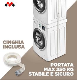 Informazioni su questo articolo KIT LAVATRICE ASCIUGATRICE: questo kit di sovrapposizione ha una struttura in tecnopolimero rinforzato che gli consente di supportare un peso massimo di ben 250 kg permettendo di guadagnare spazio posizionando l’asciugatrice sopra alla lavatrice UNIVERSALE: compatibile con tutte le lavatrici a carica frontale (con una profondità minima di 45 cm e una larghezza massima di 60 cm) e con tutte le asciugatrici a carica frontale profonde fino a 70 cm SICURO: per garantire una ottimale stabilità, questo kit con base lavatrice include una cinghia di sicurezza bianca di 6 m con fibbia in metallo per mantenere i due elettrodomestici uniti RAPIDA INSTALLAZIONE: questo kit di sovrapposizione Meliconi viene fornito premontato per offrirvi una veloce installazione; sono inoltre incluse nel kit delle protezioni in morbida schiuma QUALITÀ MELICONI: sin dalla sua fondazione, Meliconi introduce nel mercato idee originali e alla portata di tutti per semplificare la quotidianità; questo supporto asciugatrice sopra lavatrice Meliconi è 100% Made in Italy e certificato TUV