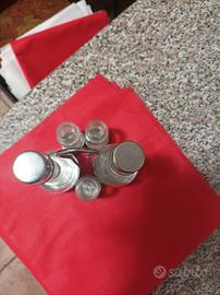 menage porta olio aceto sale pe pe stuzzicadenti inox 18/10 usato ma in buone condizioni mancano coperchietti sale pepe stuzzicadenti.