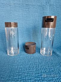 -flaconi olio/aceto : altezza 15 cm , diametro 5 cm (cristallo con tappi metallo)