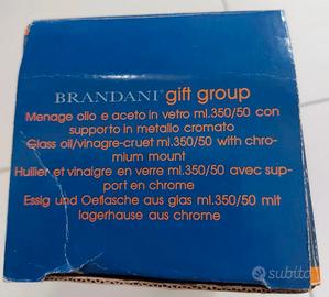 Vendo come da foto, menage olio e aceto in vetro con supporto in metallo cromato nuovo. Marca Brandani.