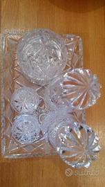 menage, set portacondimenti, olio, aceto, sale, pepe, formaggio. In cristallo finemente lavorato. regalo di matrimonio, mai usato