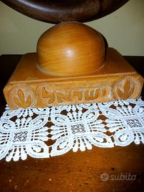 Vendo nr 1 MENORAH in legno d'ulivo, produzione artigianale, con intarsi in ebraico. Prezzo 150 euro