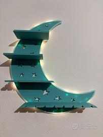 Mensola unica e decorativa a forma di luna crescente, realizzata tramite stampa 3D in PLA, pensata per unire arredamento, organizzazione e atmosfera.