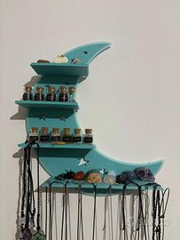 Il design celestiale con stelle intagliate, ripiani integrati e porta collane/bracciali rende questa mensola un vero pezzo dâarredo artistico, perfetto per esporre cristalli, pietre, gioielli, ampolle, oggetti spirituali o decorativi.