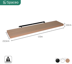 Mensola a muro SPACEO dritto in MDF L115 cm x P23,5 cm x H3,8 cm, colore nero. Questa mensola a muro con fissaggi invisibili è discreta e mette in risalto gli oggetti che vi sono collocati. La finitura nera e l'assenza di supporti visibili conferiscono agli interni un design fluttuante e minimalista. Questo tipo di mensola a muro è adatto a un soggiorno, a una cucina e a una camera da letto per adulti o bambini. Le sue dimensioni sono L115 cm x P23,5 cm x H3,8 cm ed ha una capacità di carico fino a 10 kg. Il sistema di montaggio invisibile è incluso, ma sono necessarie cinque viti da acquistare separatamente, adatte alla vostra parete. I tasselli per il montaggio al muro non sono compresi perché dipendono dalla tipologia del muro. Vendo per trasloco. Ritiro in zona Borgo Vittoria, Torino.