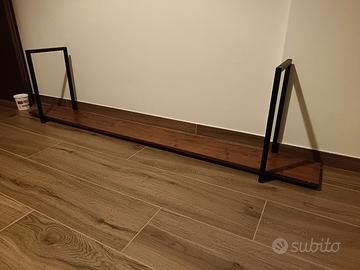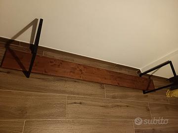 Mensolone da soffitto in legno con staffe rettangolari in ferro. Misure tavola 20x200 Misure staffe 30x50 Venduta con i suoi tasselli di ancoraggio per carichi pesanti diametro 8