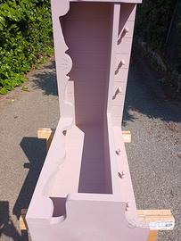Mensola angolare in legno di noce, restaurata in stile shabby chic. Colore rosa antico. Composta da vano portaoggetti e ganci appendi tutto. Articolo nuovo.