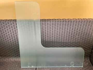Mensola angolare in vetro, usata in cucina per sfruttare lo spazio dell’angolo. Senza supporti, solo vetro. Misure 60x60 cm, larghezza 20 cm, spessore 1cm. Solo ritiro a mano. No spedizione.