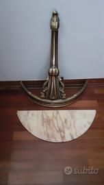 Mensola antica sospesa in legno con intarsi e pietra marmo rosato