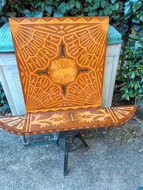 mensola con pannello entrambi intarsiati a mano seconda metà del 900. Quasi perfettamente integri, da appendere con tasselli.