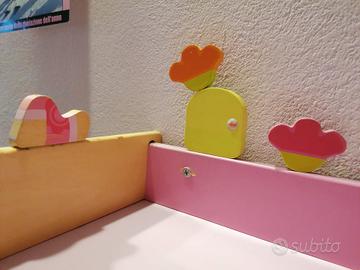 Vendesi mensola attaccapanni bambina, composta da mensola e 3 ganci con motivi decorativi (vd. foto). Misure 57 x 20 x 20. Ritiro a Livorno o con spese a carico del destinatario.